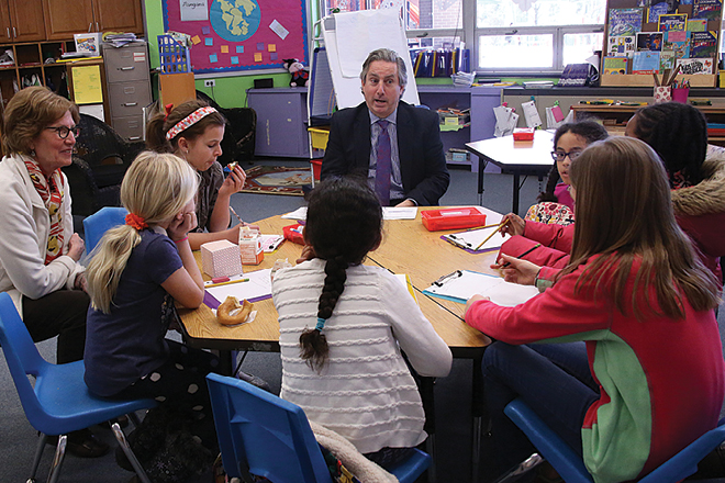 Photo above: Aloise speaks with a third-grade class at Springside Chestnut Hill about water usage.