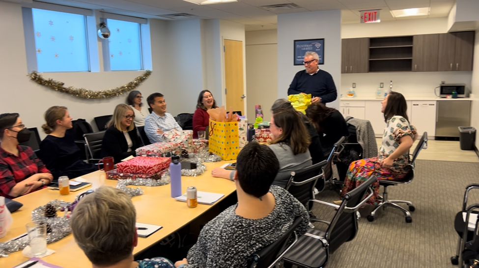 Our icebreaker for the December all-staff meeting involved buying Toys for Tots and sharing personal stories. Cheers to Felix Rivera, association services coordinator, for managing the festive decorations.